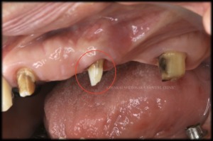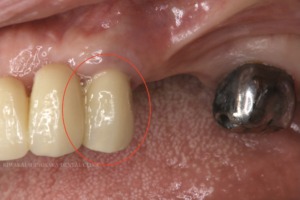 しかし、問題のある歯は仮歯の真ん中に位置しており、この歯を無くしてしまうと連結した仮歯を支える歯が左上1と7だけとなり、間に歯がひとつも無い状態となるため、維持していくのが難しくなることが懸念点でした。