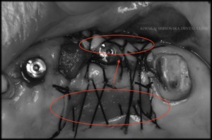 また、左上5ー7上部の角下歯肉が減っていたため、インプラントの頭出しと同じ日に、歯肉移植【FGG(遊離歯肉移植術)】も行いました。