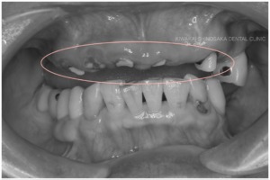こちらの患者さまは、上顎の義歯が1ヶ月の間に7回ほど割れてしまうためなんとかしてほしいとのことで、貴和会新大阪歯科診療所担当医へご相談されました。